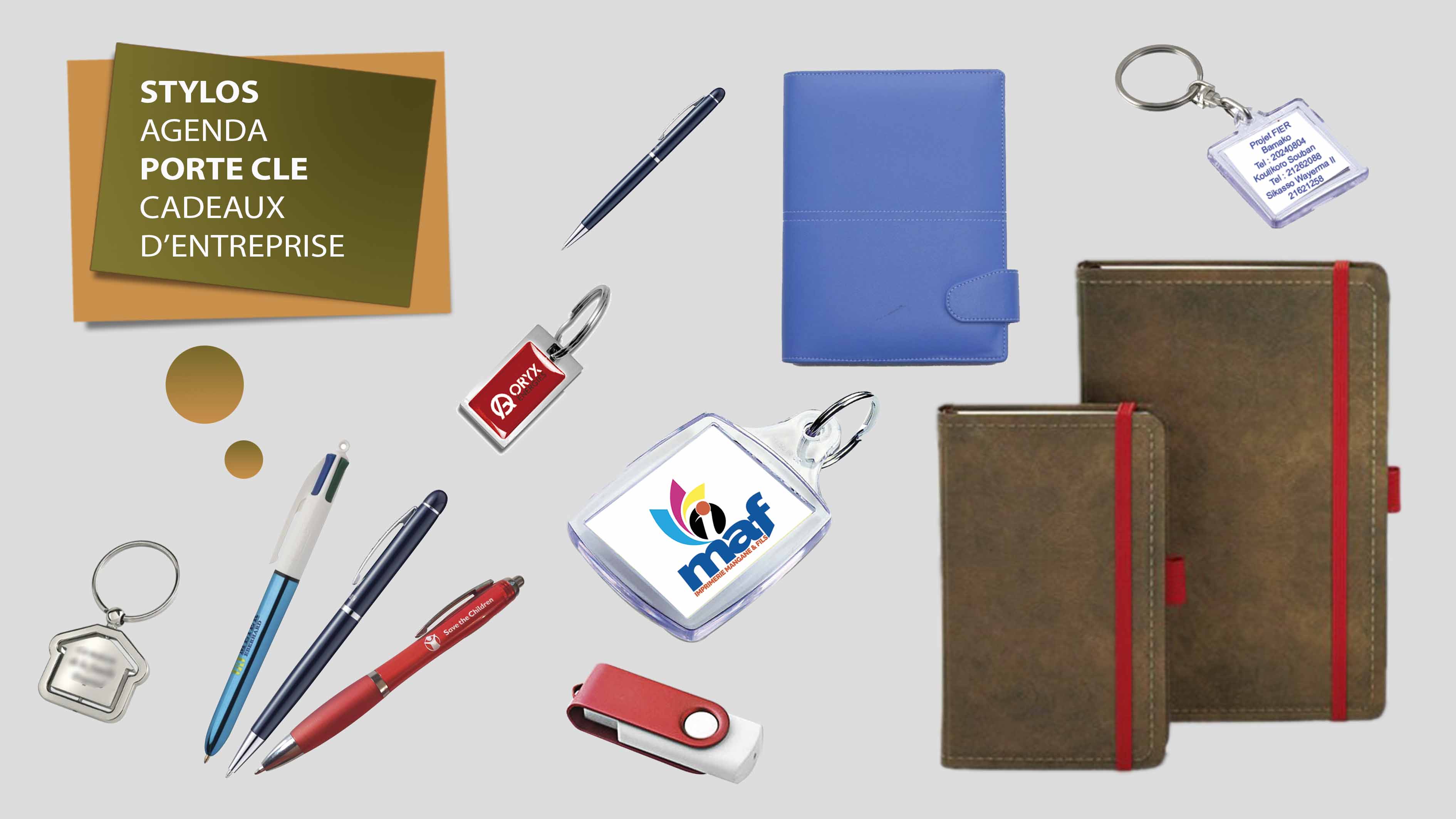 Stylos, portes clés , agenda et cadeaux d’entreprise